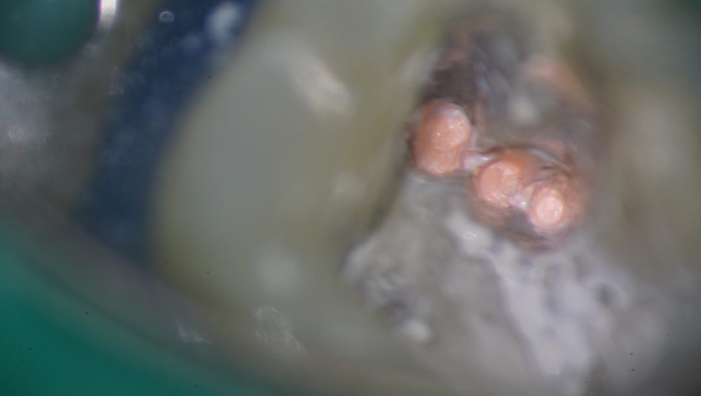 上顎大臼歯の治療を困難にするものの一つにMB2という、副根管があります。